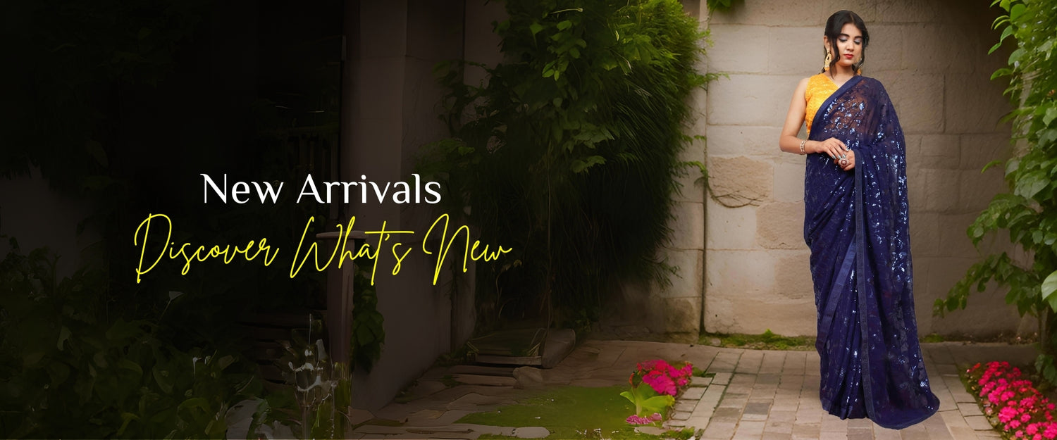 Designer Saree with Sequin & Embroidery Work by Shreekama - Lemon Yellow