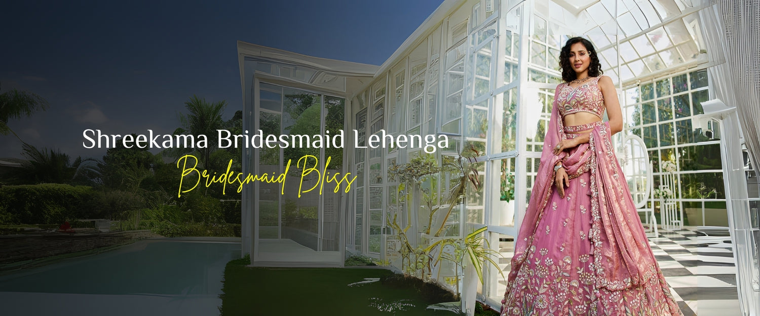 Beautiful mirror and stone work on this pink lehenga set for women by Shreekama
