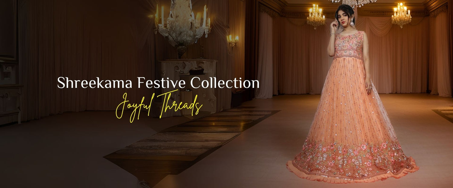 Peach Gown with Embroidery & Sequin Work by Shreekama - Peach- Regular price